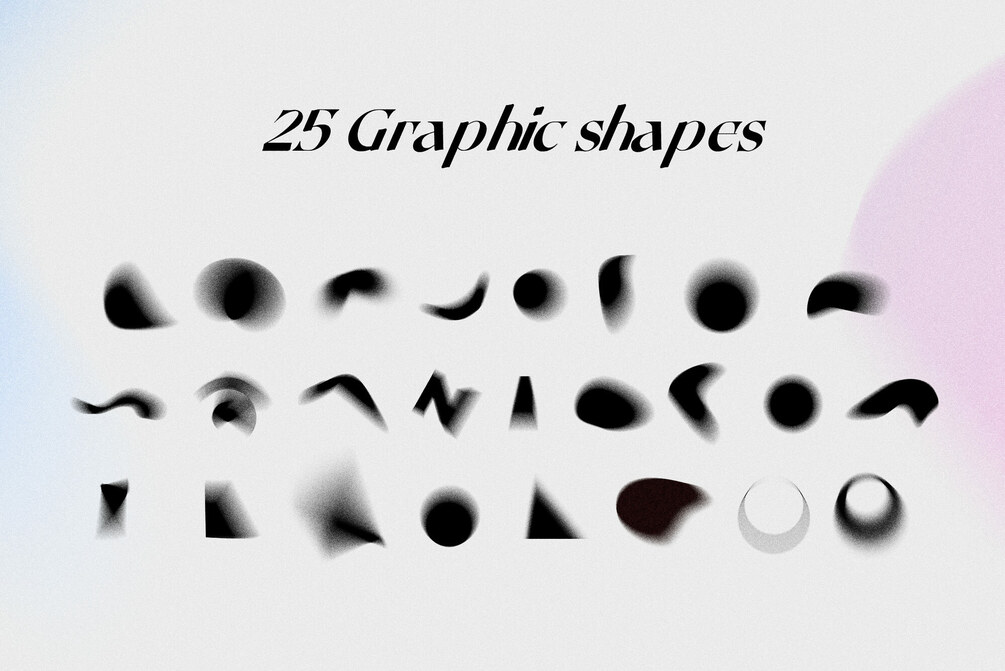 Vintage Grainy textures are a trend in 2021. This pack of 25 Graphic elements and 20 Gradients will boost your next project's success.